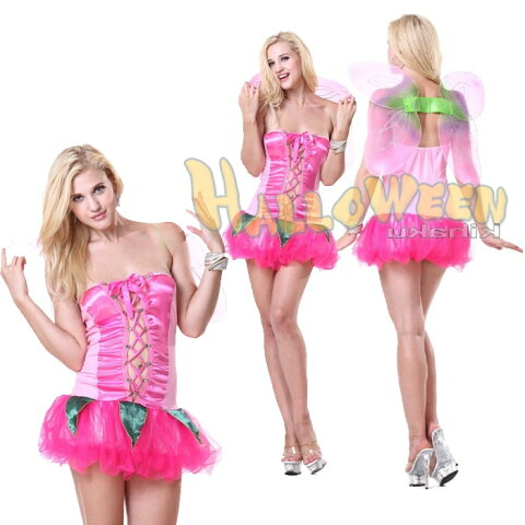 翼 ピンク色 妖精 ティンカーベル コスプレ衣装 ハロウィン?コスプレ ハロウィン 衣装 大人用 服 コスチューム 仮装 セット かわいい 可愛い カワイイ パーティー パーティーグッズ イベント セクシー 女性用 レディース 余興 一式